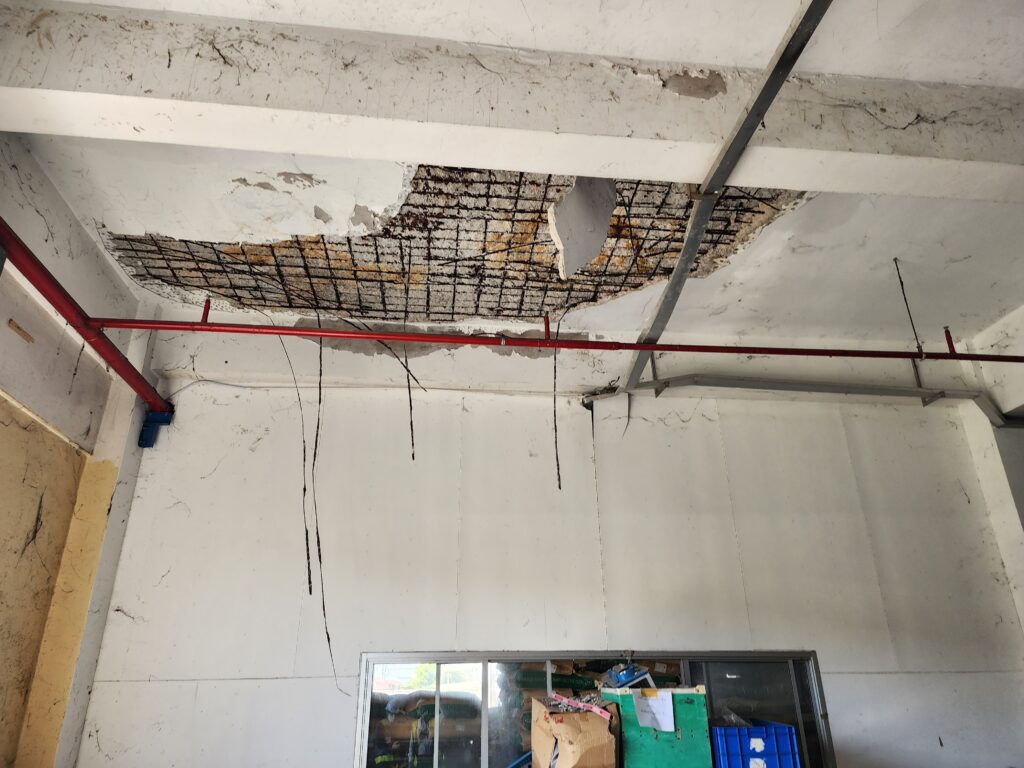 จากรูปพื้นที่แสดง เป็นสนิมเป็สัญญาณที่อาจแสดงถึงความเสียหายหรือปัญหาในโครงสร้างอาคารโดยเกิดจากพื้นด้านบนเป็นดาดฟ้าและนำขัง การตรวจสอบและดำเนินการแก้ไขโดยผู้เชี่ยวชาญในระยะเวลาที่เหมาะสมจะช่วยให้รักษาความปลอดภัยอาคารได้ตามที่กำหนดไว้